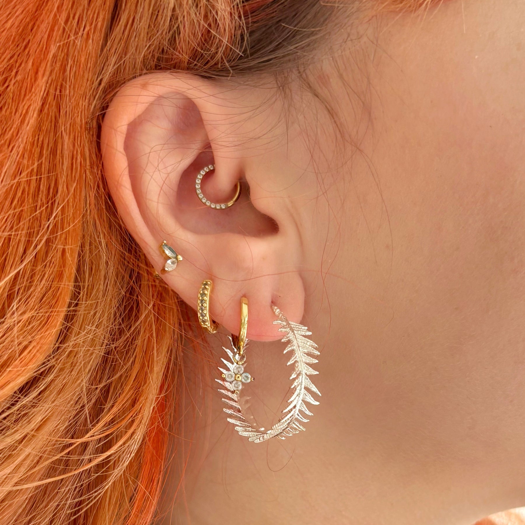 Our Fern Hoop Earrings in sterling silver are inspired by the delicate, natural shapes of woodland ferns. Each pair is handmade in the UK with crisp detailing that reflects the beauty of the outdoors. Lightweight, elegant, and effortlessly wearable, they’re perfect for everyday style or meaningful gifting.