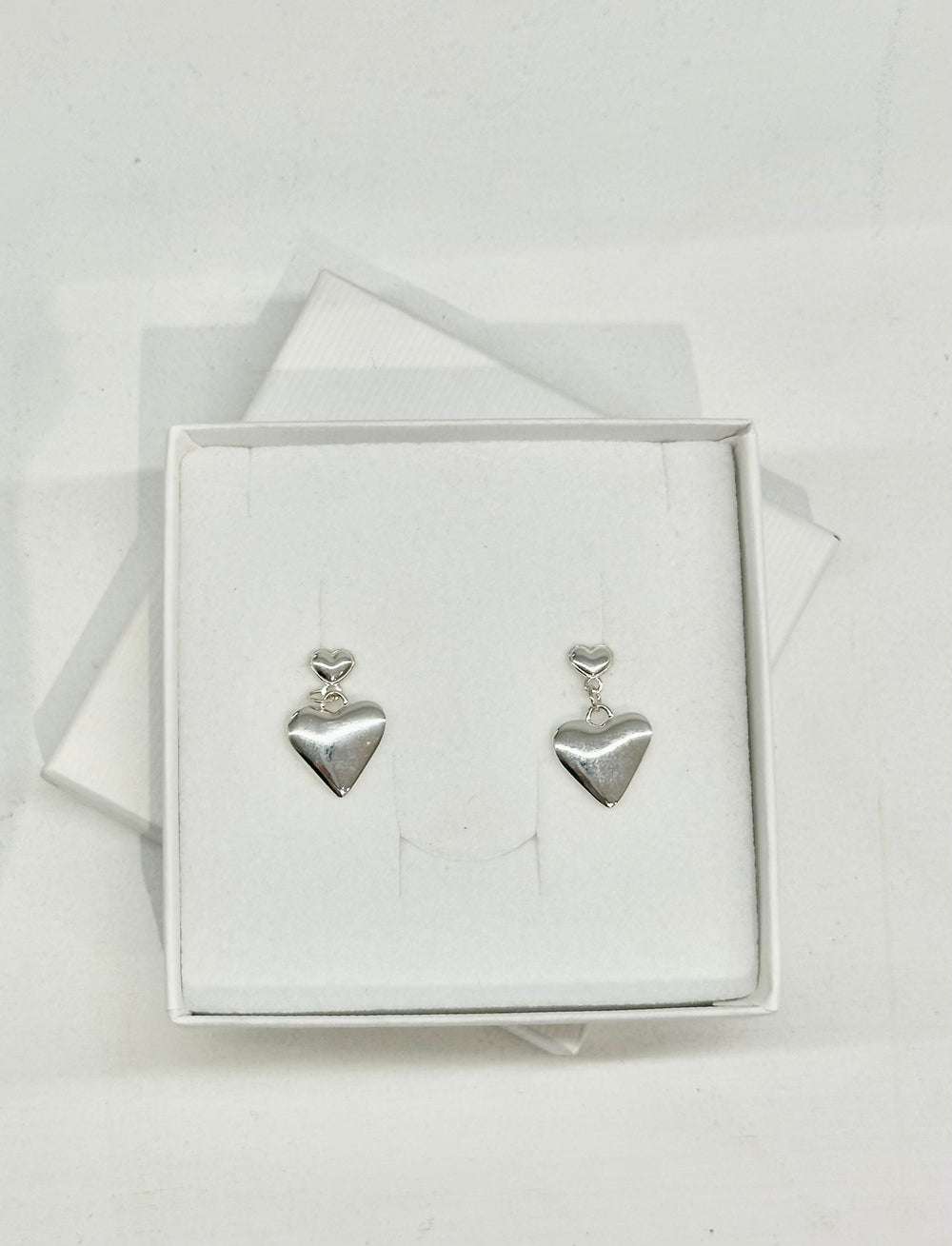 Show your love with our Sterling Silver Heart Drop Stud Earrings—playful and distinctive, these earrings are a delightful addition to your collection. Handmade with care, these  recycled 925  silver earrings boast a distinctive design, featuring delicate heart drops  suspended from simple  heart stud earrings. Their unique charm and individuality make them an essential and elegant addition to your jewellery box, perfect for expressing your personal style.